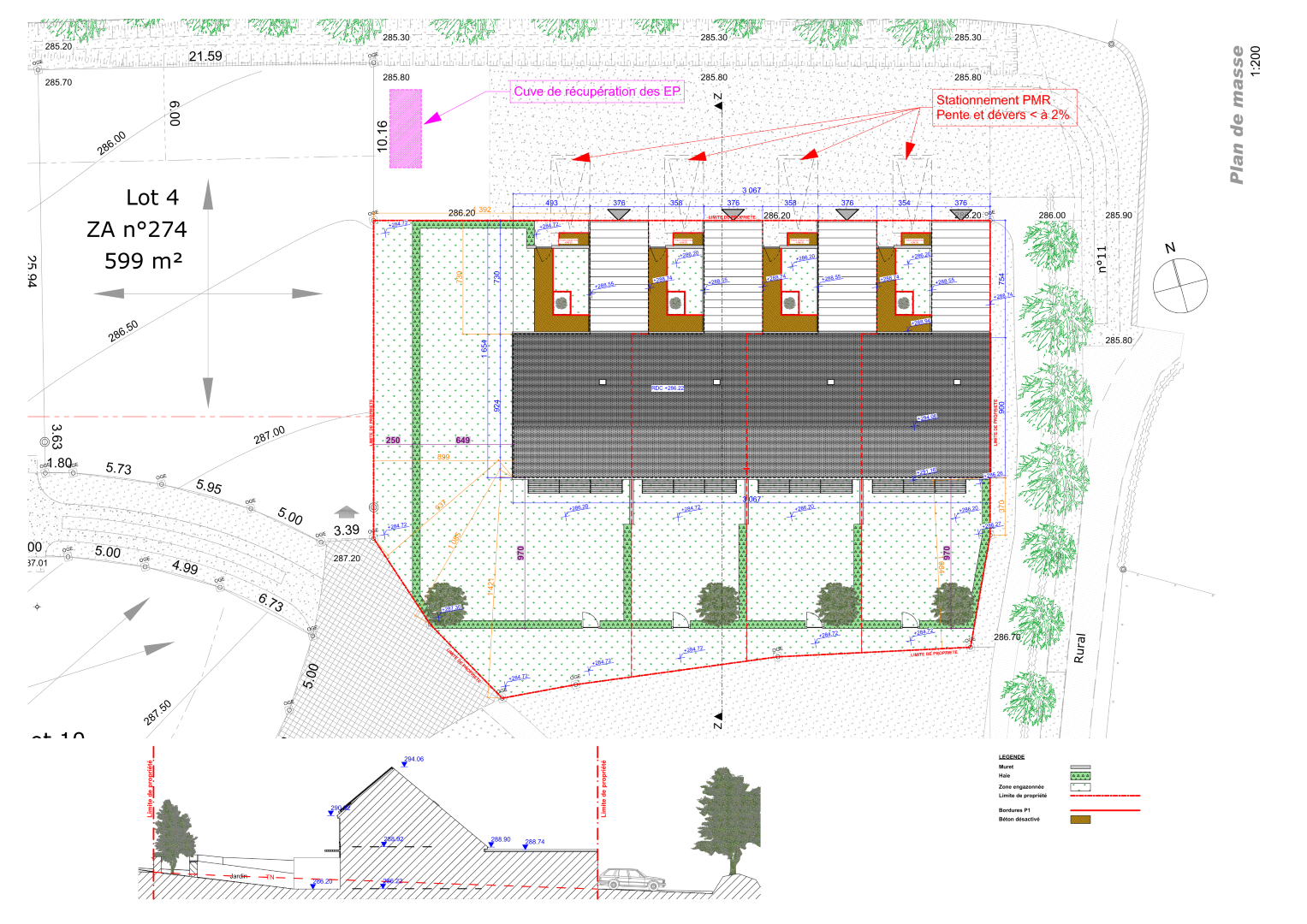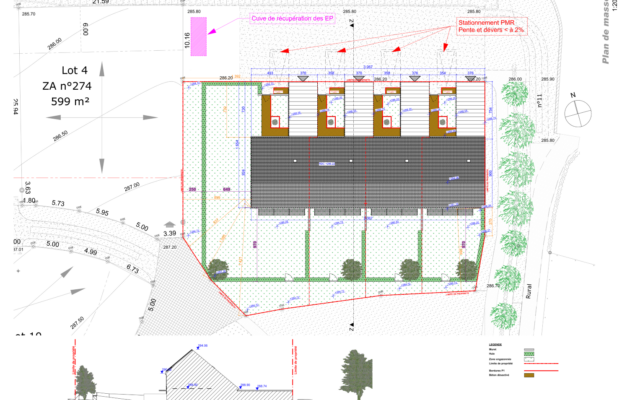 Le parti retenu est celui de l’économie (logements sociaux), de l’économie d’énergie et du respect de l’environnement conformément aux souhaits du règlement du lotissement. Le projet répond aux exigences de la RT 2012 BBC.