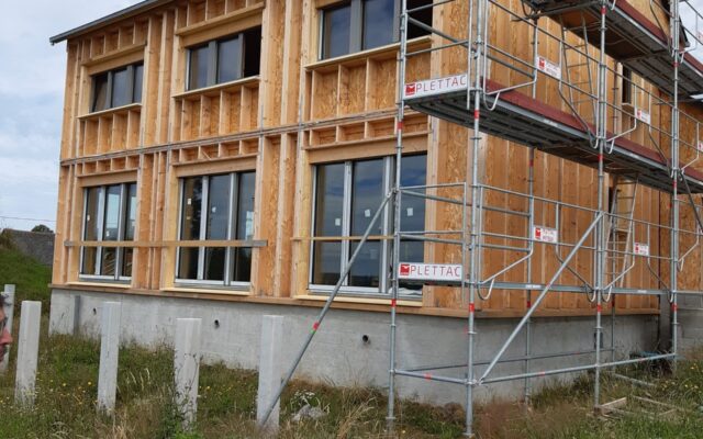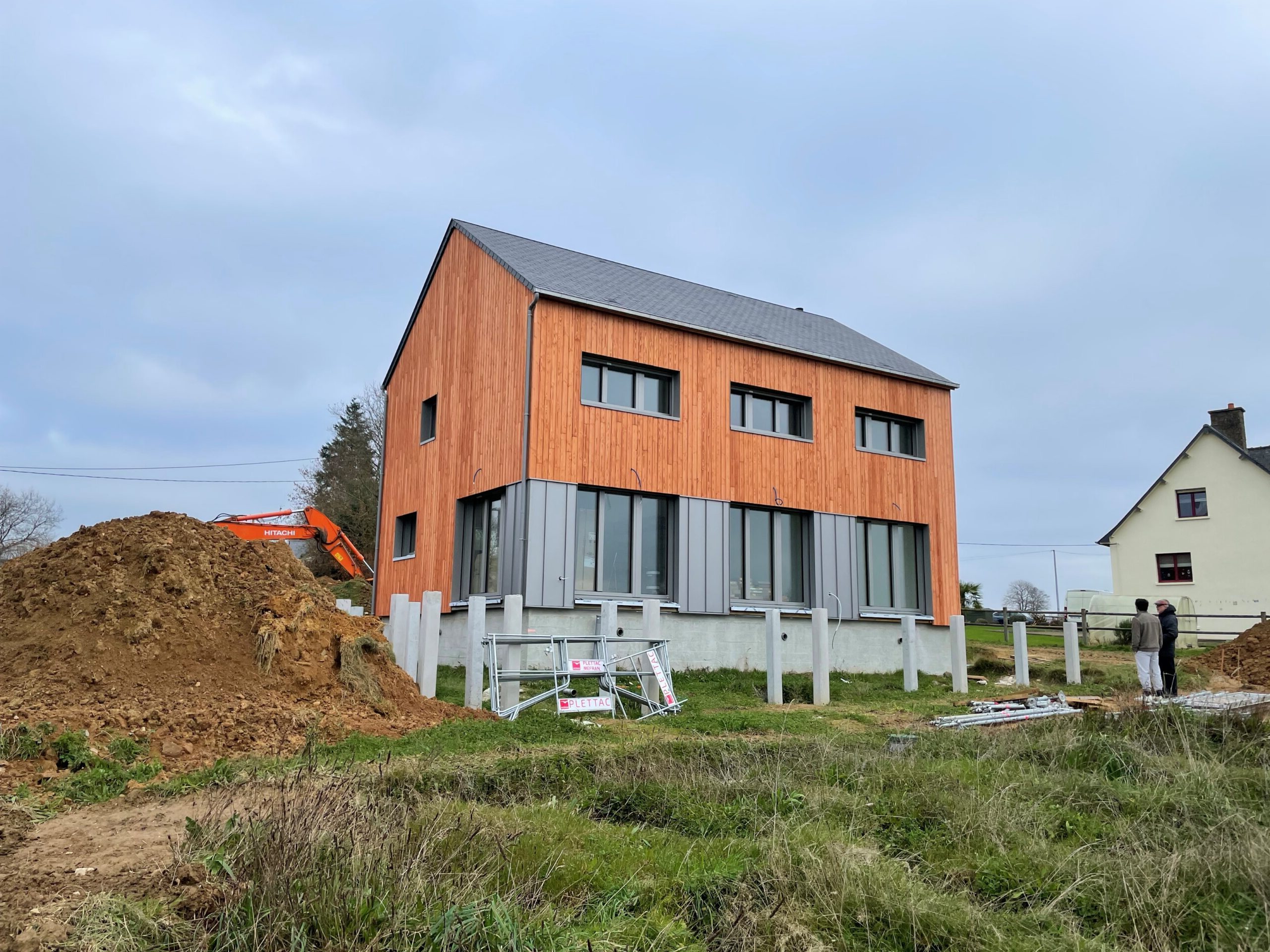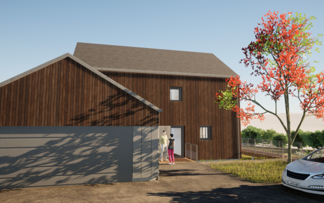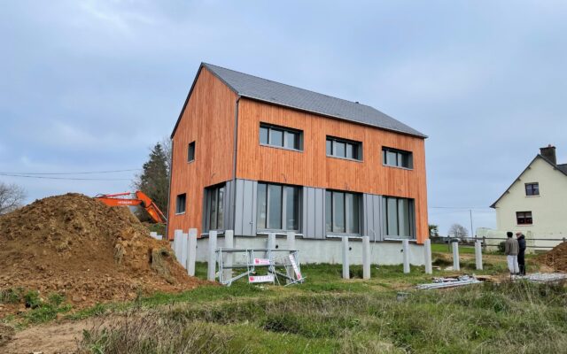 Construction d’une maison passive, dans un hameau proche de Fougères avec une vue dégagée vers le Sud et la vallée du Couesnon.