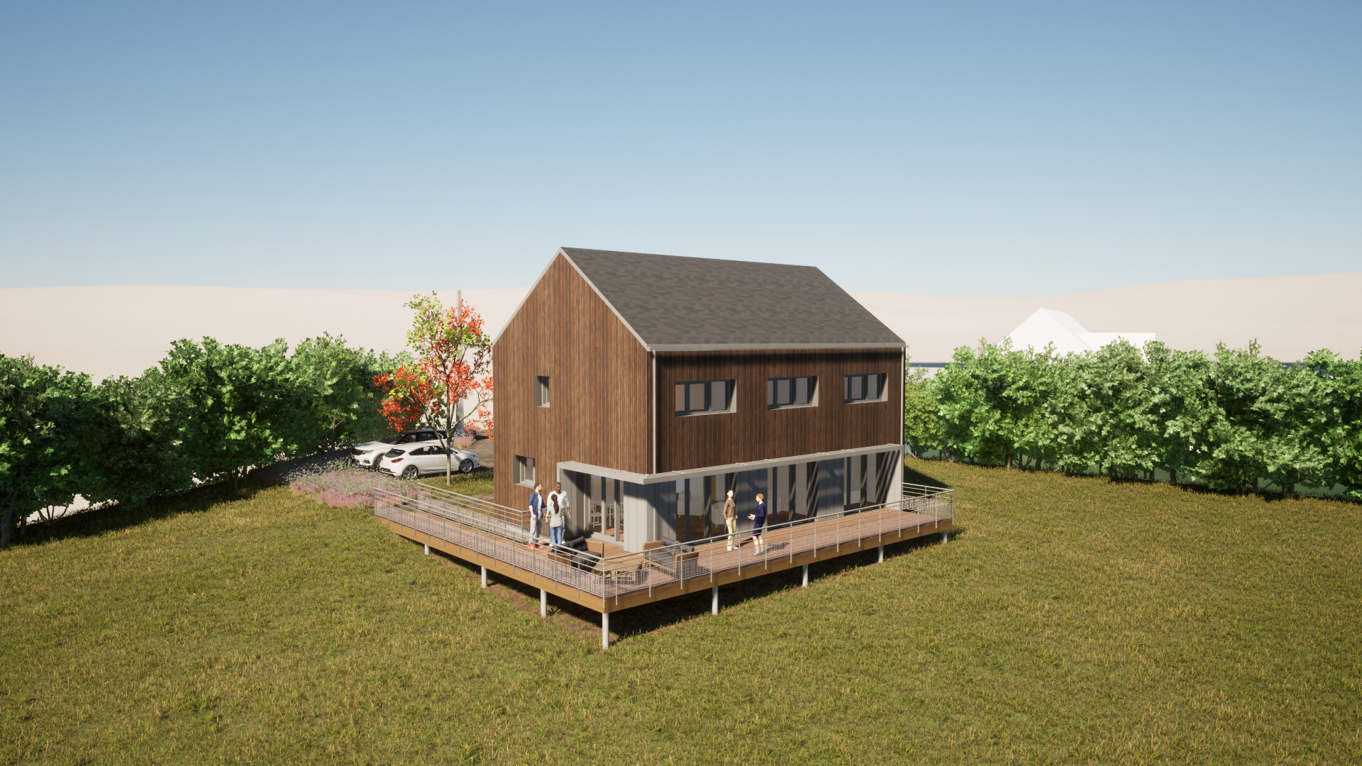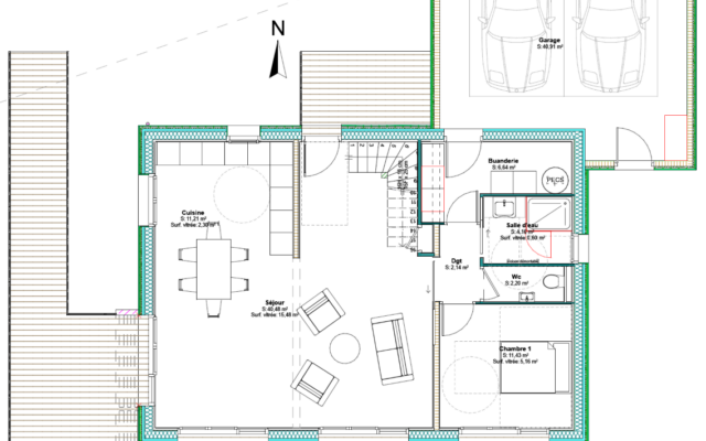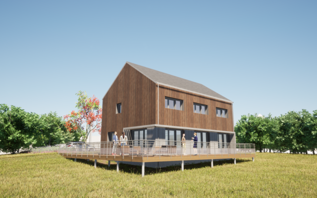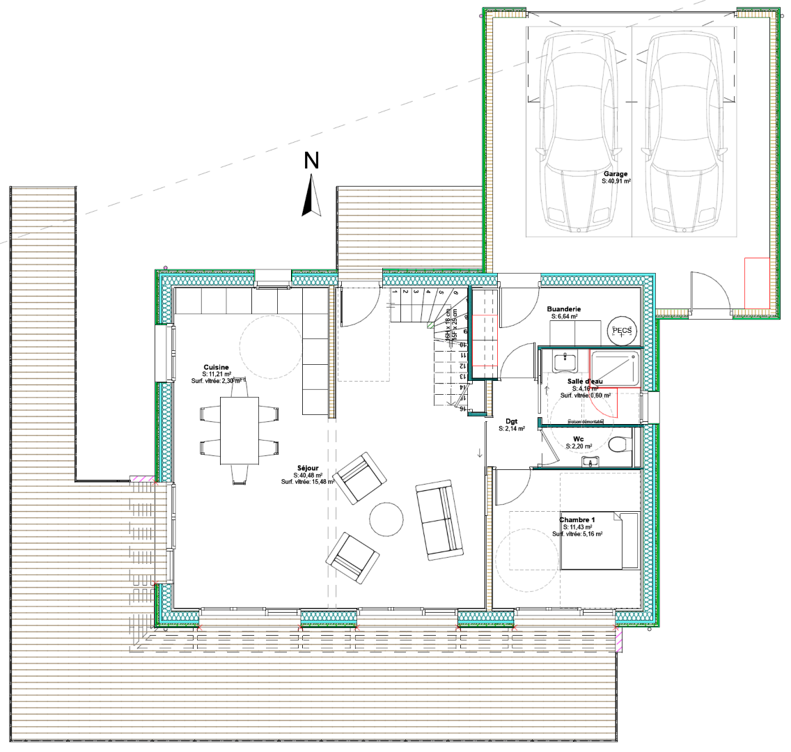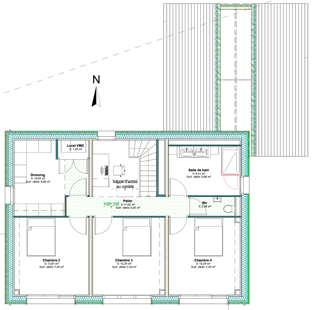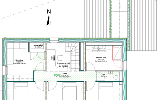 Une forme simple, respectant l’architecture local, une structure en bois, des matériaux respectueux de l’environnement pour un habitat se voulant le plus sain possible.