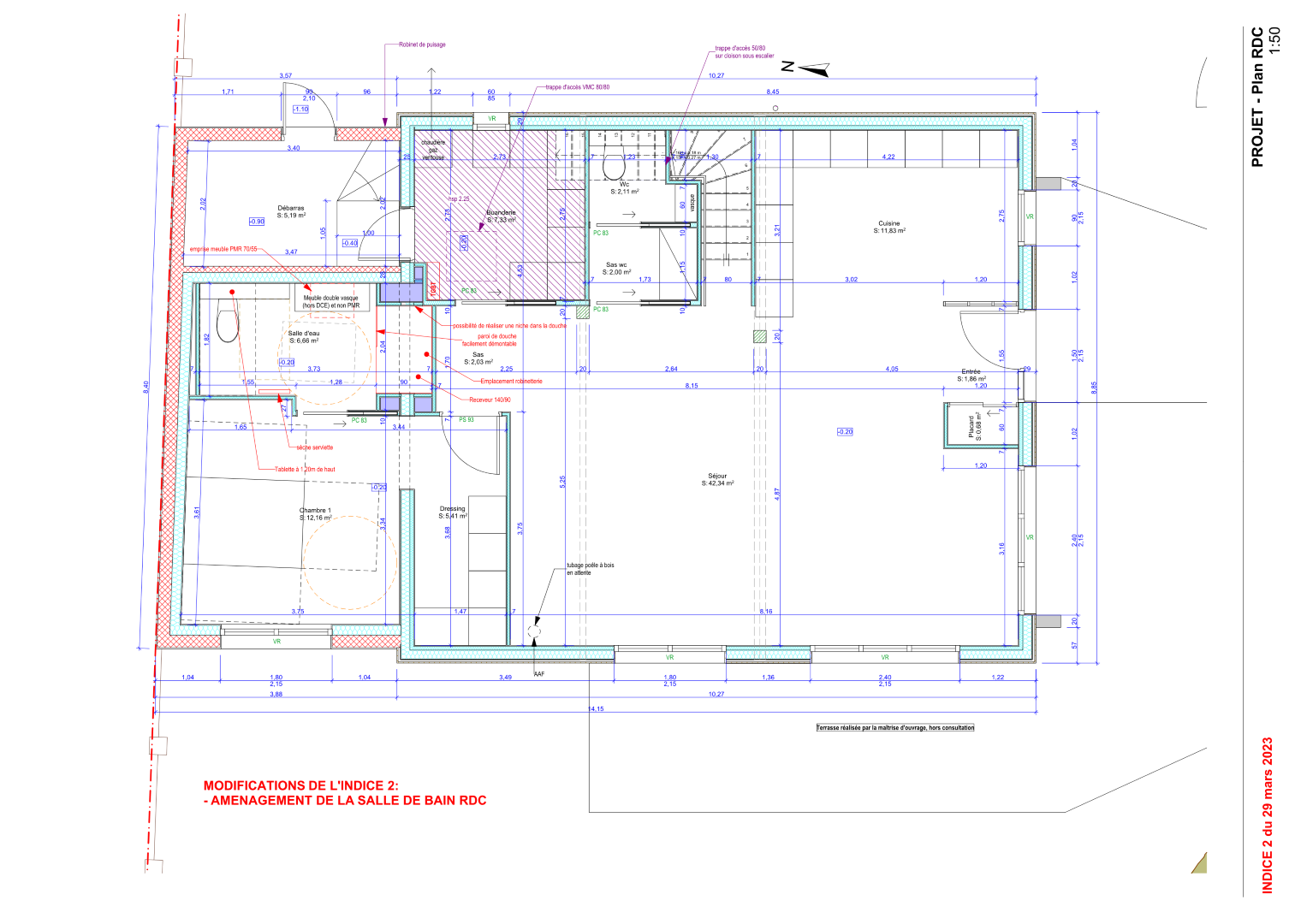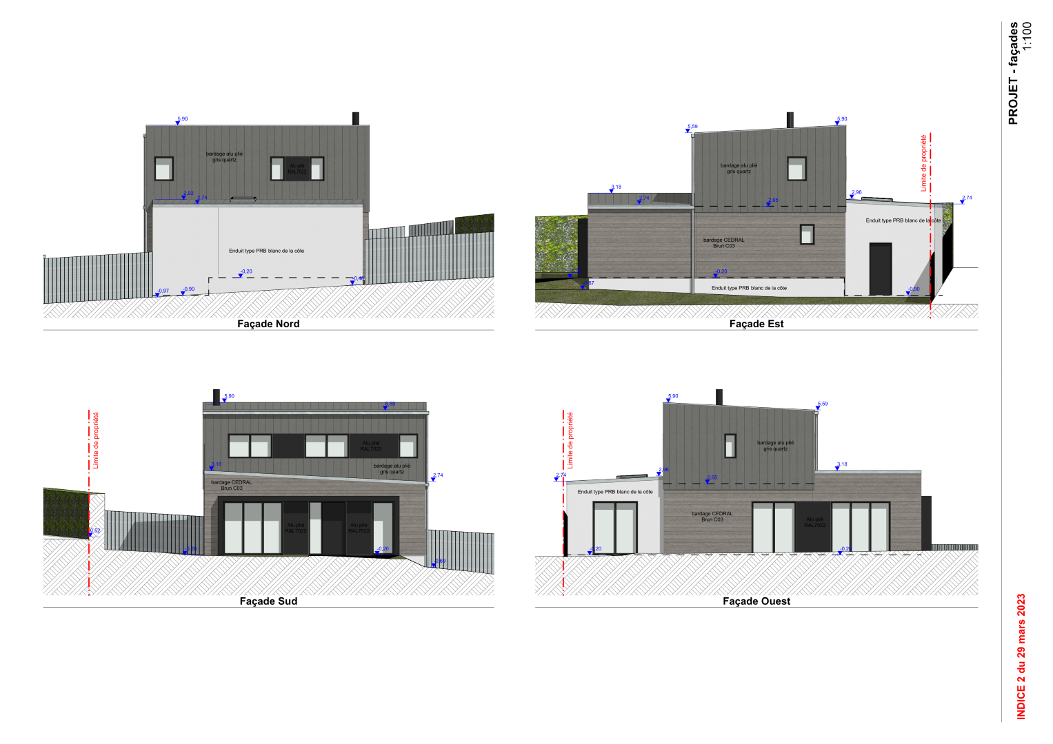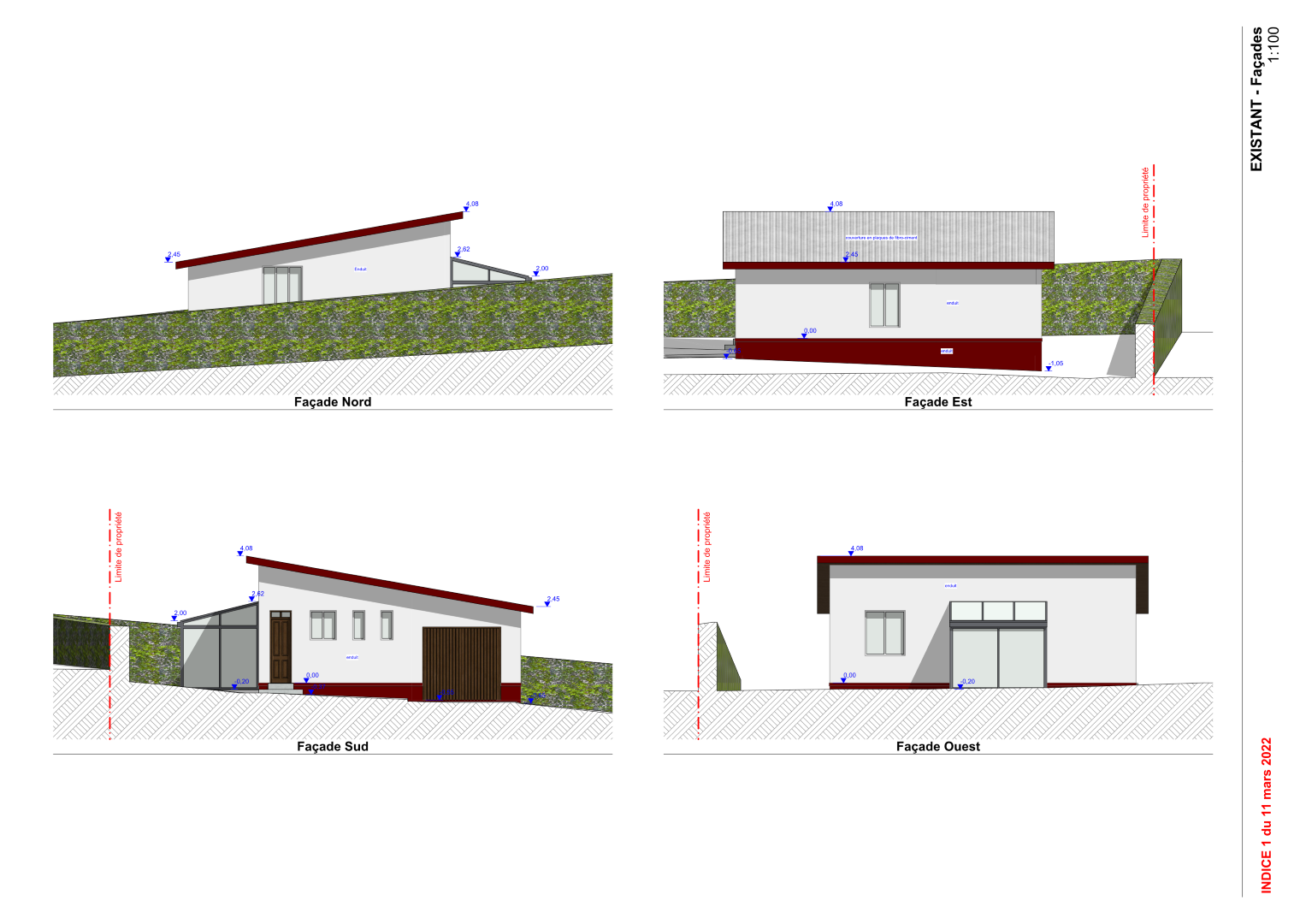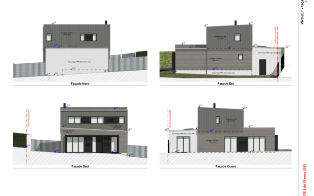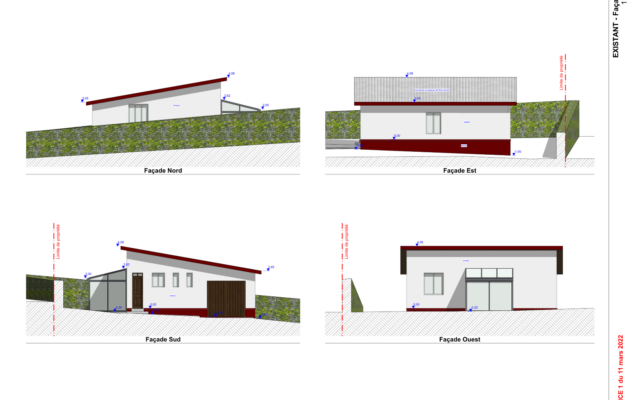 Bien que souhaitant affirmer une architecture contemporaine, le projet dans son ensemble reprend le principe volumétrique de la construction existante. La surélévation comporte une toiture monopente, l’extension Nord également et la partie restant de l’habitation existante sera également avec une toiture monopente.