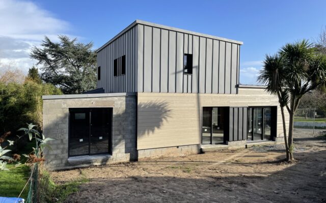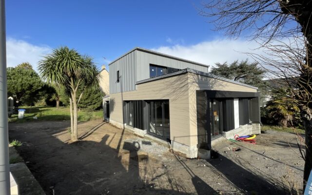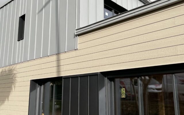 Tout ces matériaux s’intègre à l’environnement car ils sont couramment utilisés. Pour les couvertures, l’ensemble sera traité de la même manière que le bardage de la surélévation, avec le même aspect joint debout et la même teinte. Il en ressort un projet homogène, de style contemporain. Un soin a été apporté à l’isolation du projet, qui est quasi intégralement en matériaux biosourcés (fibre de bois), le but étant de réduire l’impact environnementale tout en augmentant la qualité de vie.