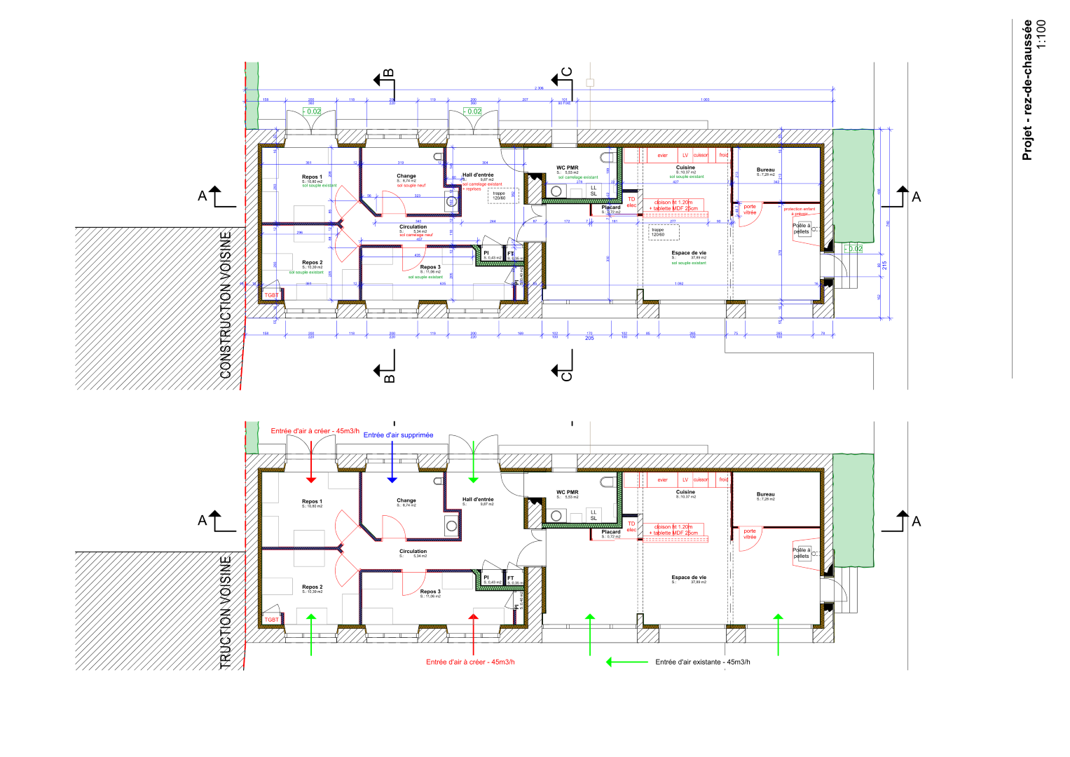 La surface et le budget limité, l’impossibilité d’ouvrir de nouvelles ouvertures et les réseaux existants étaient des contraintes fortes, toutefois nous avons réussi à intégrer tout ce qui était nécessaire à la réalisation de cette MAM en tenant le budget et en ayant reçu l’agrément nécessaire à l’ouverture.